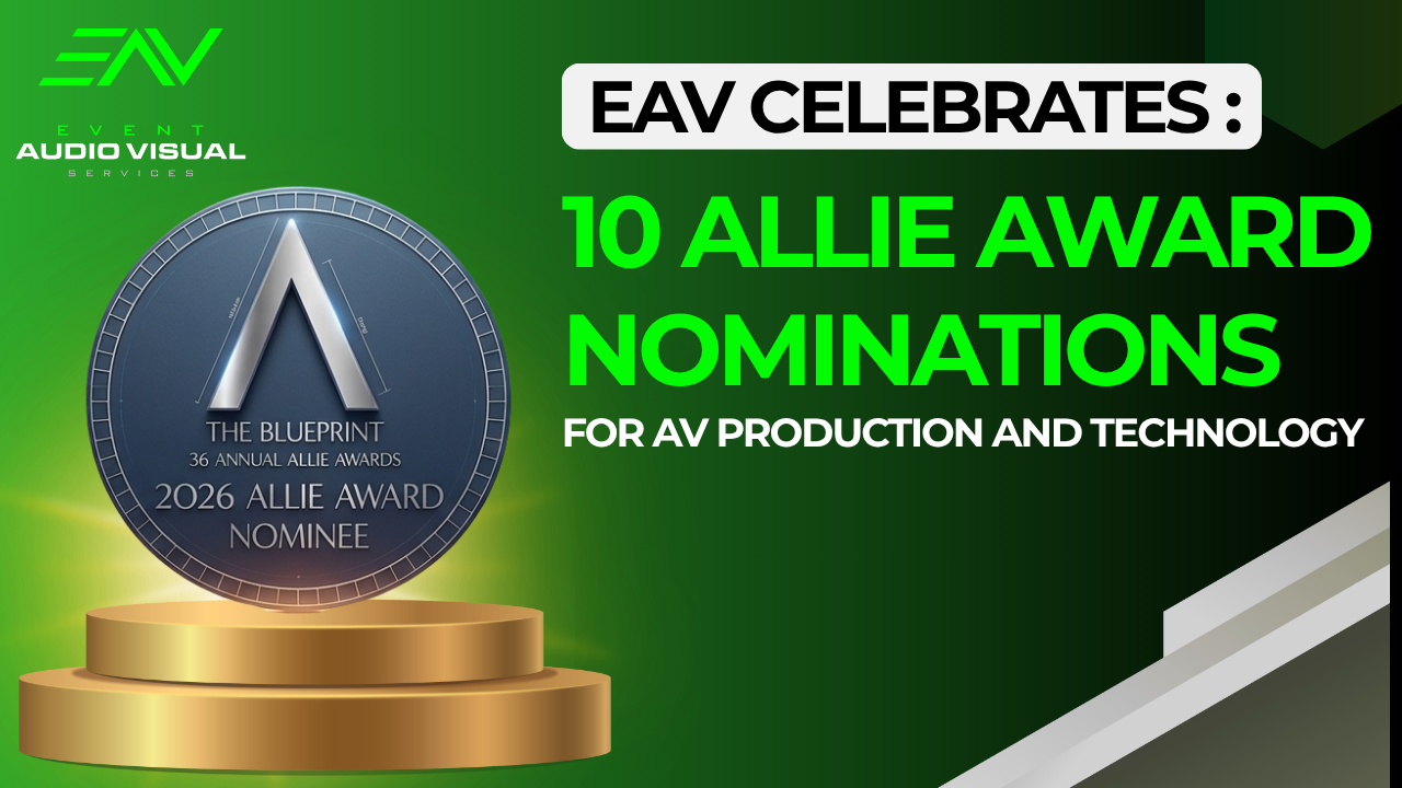 Event Audio Visual Services, Inc. (EAV), a premier full-service audiovisual production company, is proud to announce it has earned 10 nominations for the prestigious Allie Awards. Often referred to as the “Oscars of the event industry,” these nominations recognize EAV’s leadership in audiovisual production, event technology innovation, and creative event design.